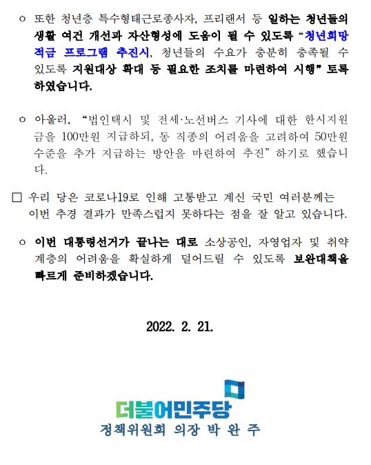 [보도자료] 더불어민주당 정책위원회, 2022년 추가경정 예산안 심사 5대 성과