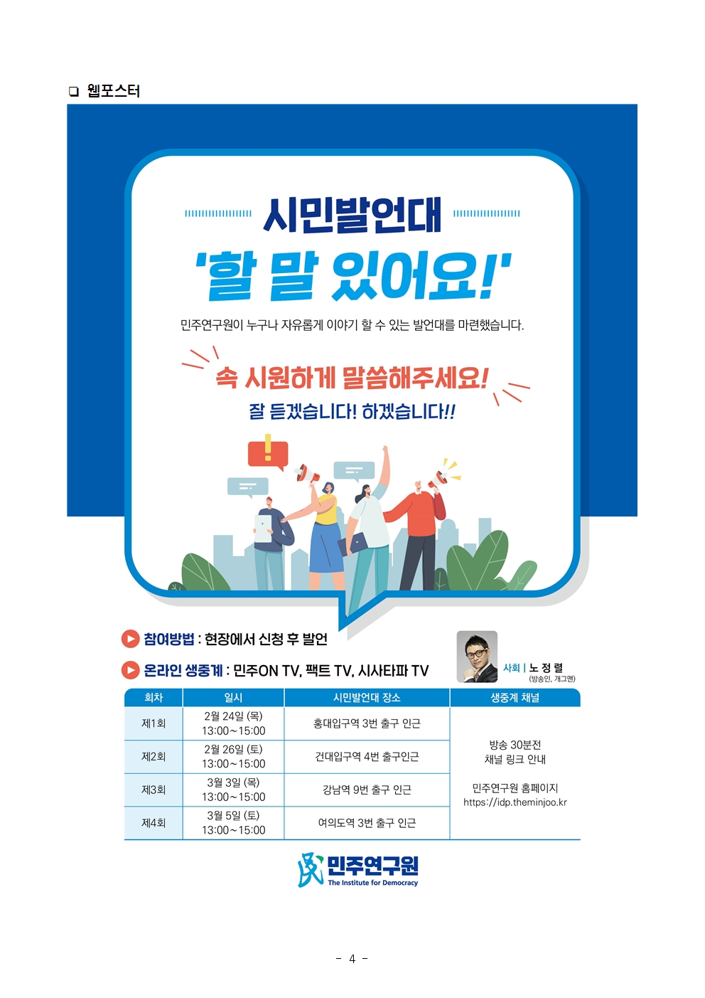 [보도자료] 더불어민주당 민주연구원, '시민발언대, 할 말 있어요!' 캠페인 시작