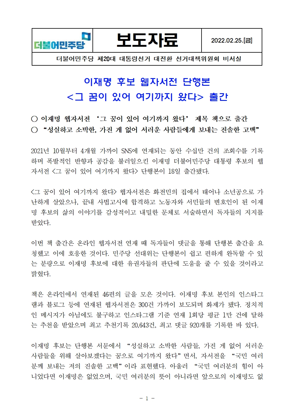 220225_보도자료_그_꿈이_있어_여기까지_왔다_이재명_후보_웹자서전_책_출간_최종.pdf