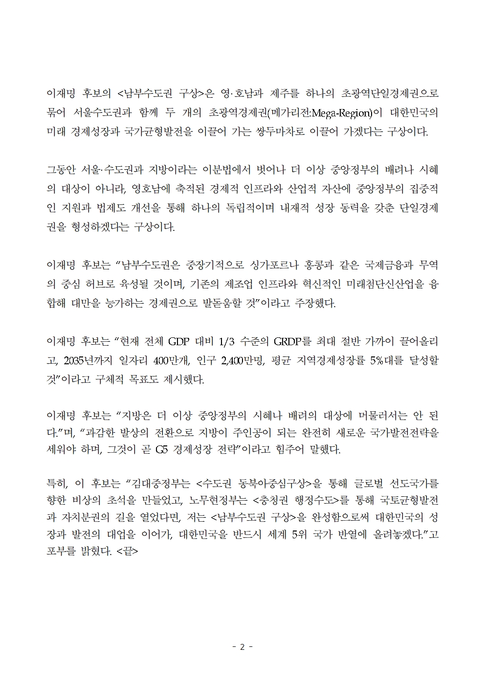 [보도자료] 더불어민주당 선대위 후보비서실, 남부수도권 구상 실현위원회 출범