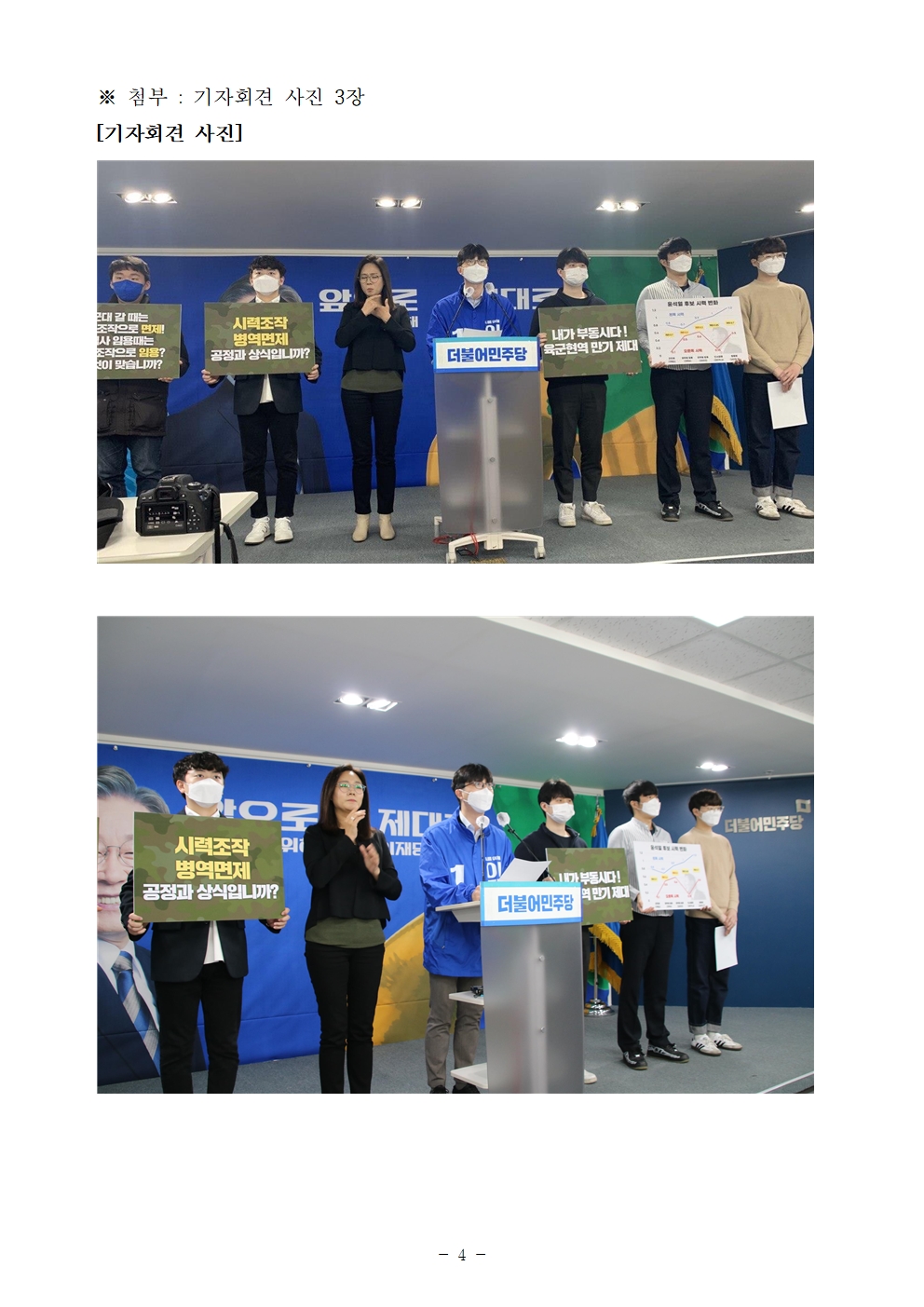 [기자회견문] 더불어민주당 다이너마이트 청년선대위, 시력조작 병역기피, 이게 공정과 상식입니까?