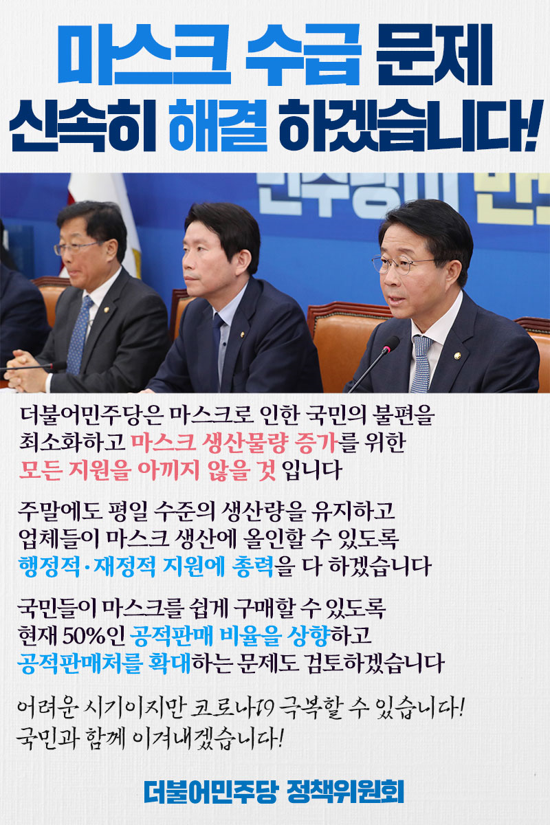 마스크 수급문제, 신속히 해결하겠습니다!