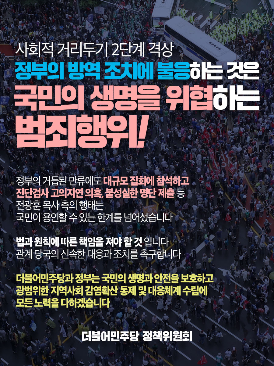 정부의 방역조치에 불응하는 것은 국민의 생명을 위협하는 범죄행위!