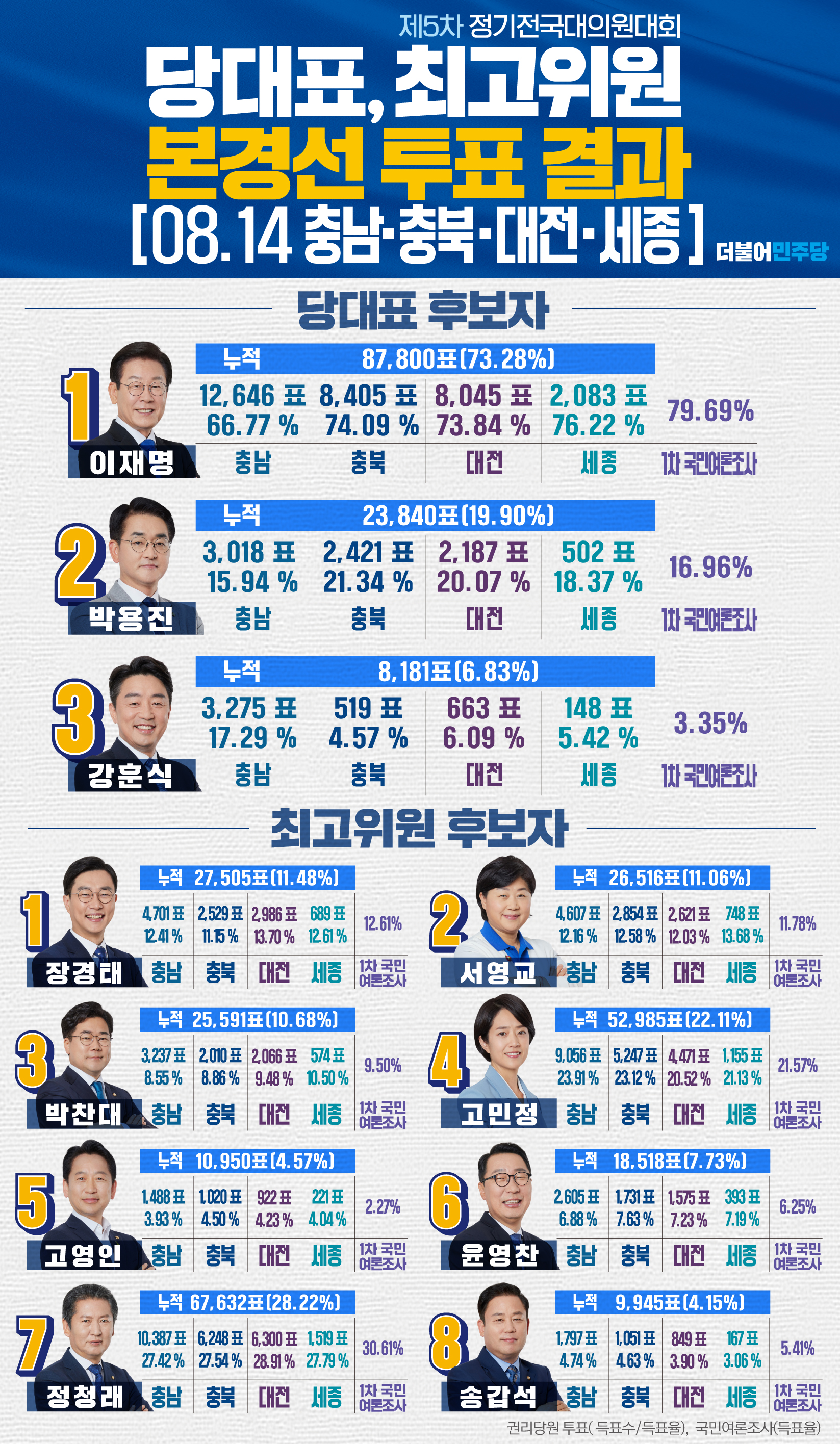 당대표, 최고위원 본경선 투표 결과 [충남, 충북, 대전, 세종]