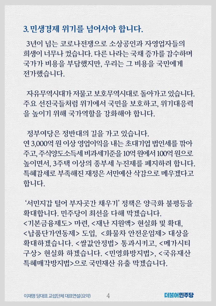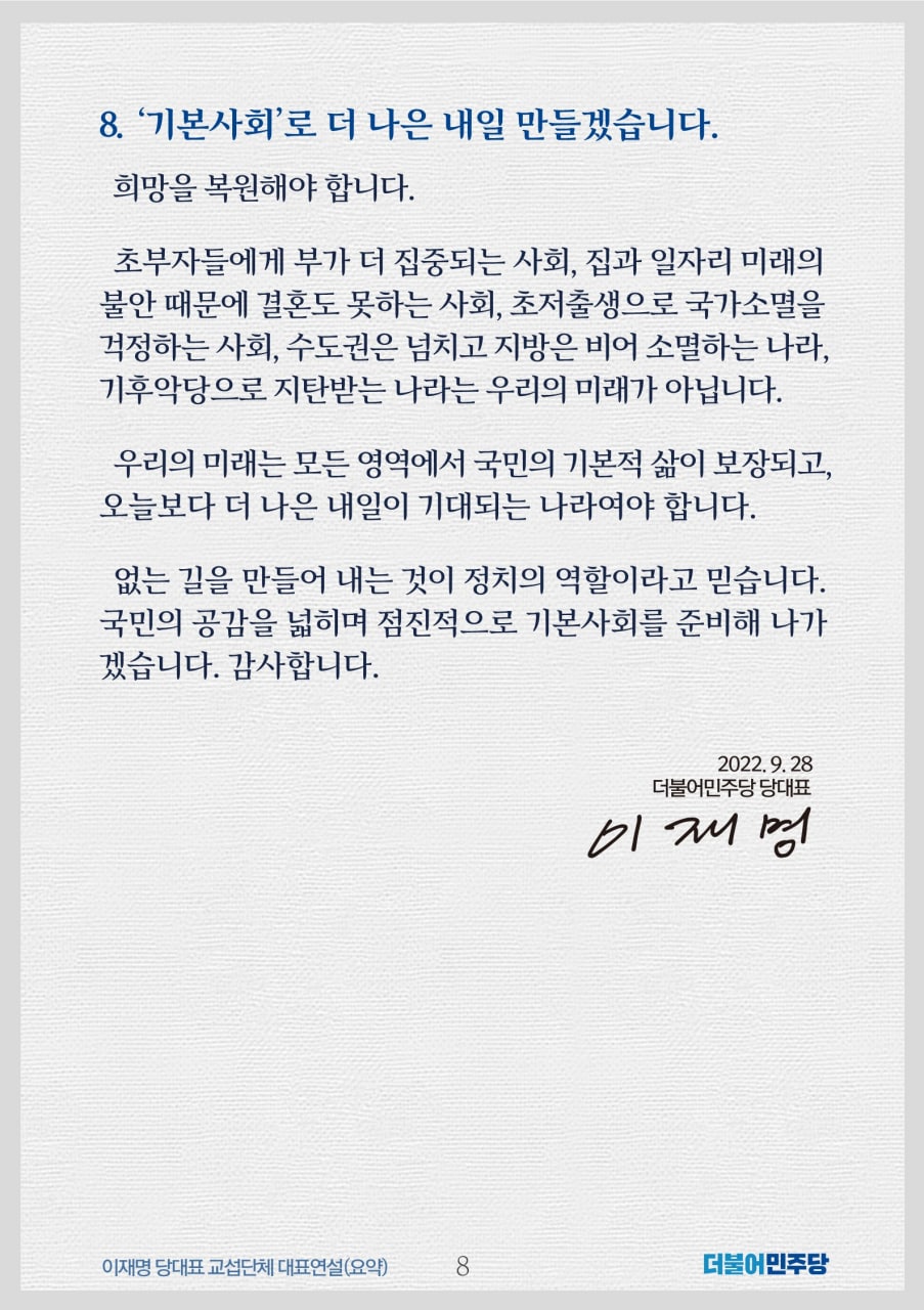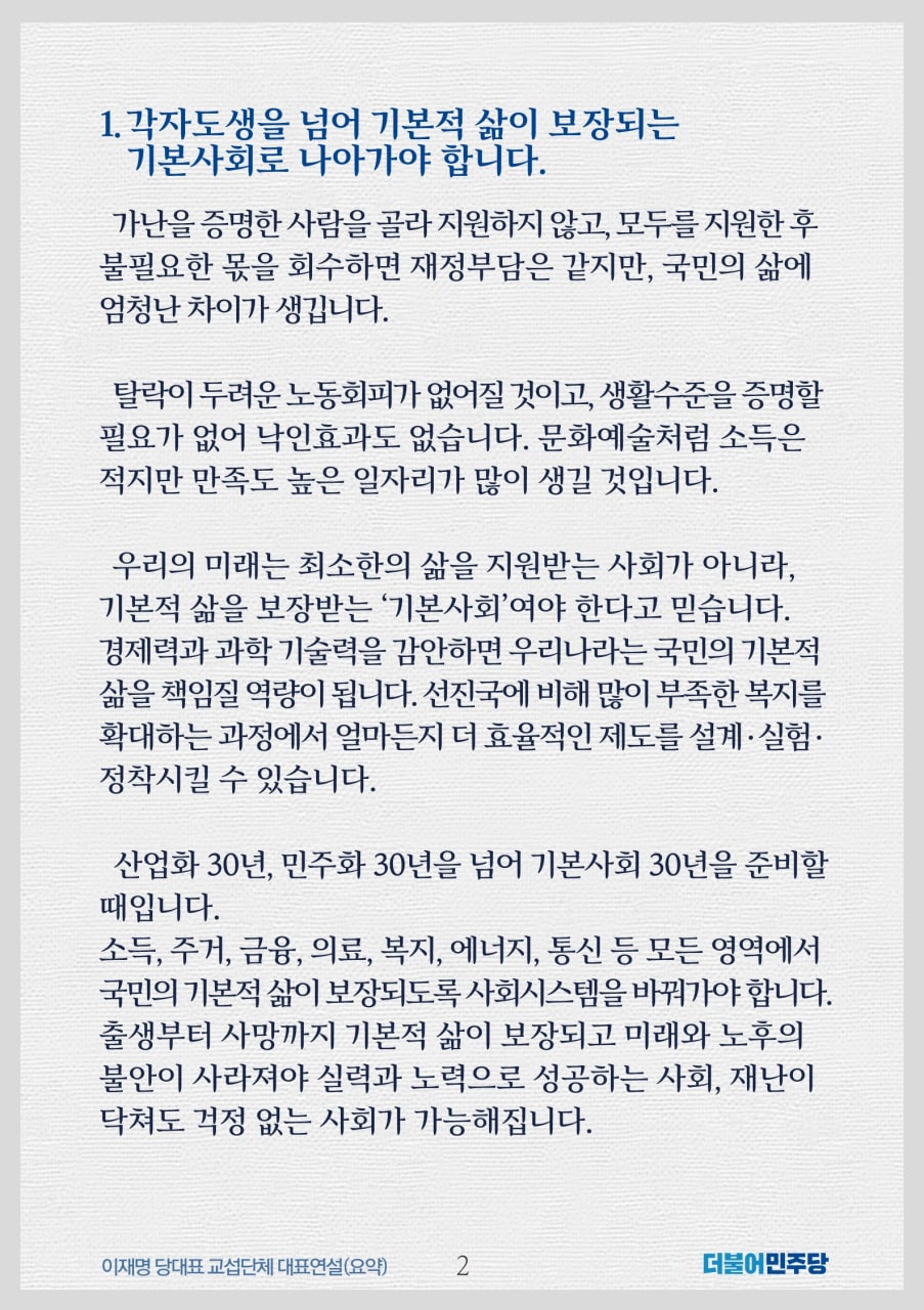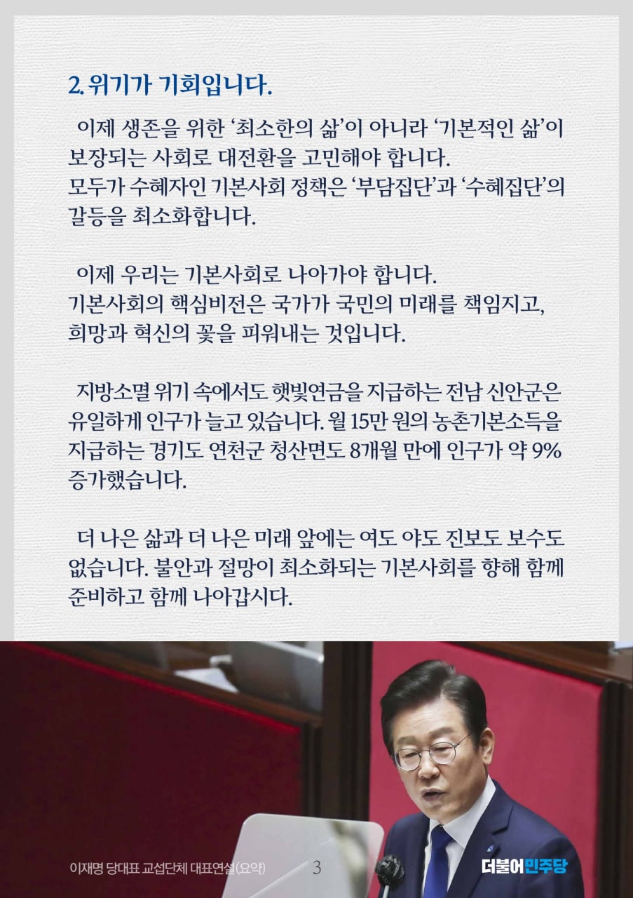 위기를 기회로! '기본사회'가 답입니다 [이재명 더불어민주당 당대표 교섭단체 대표연설]