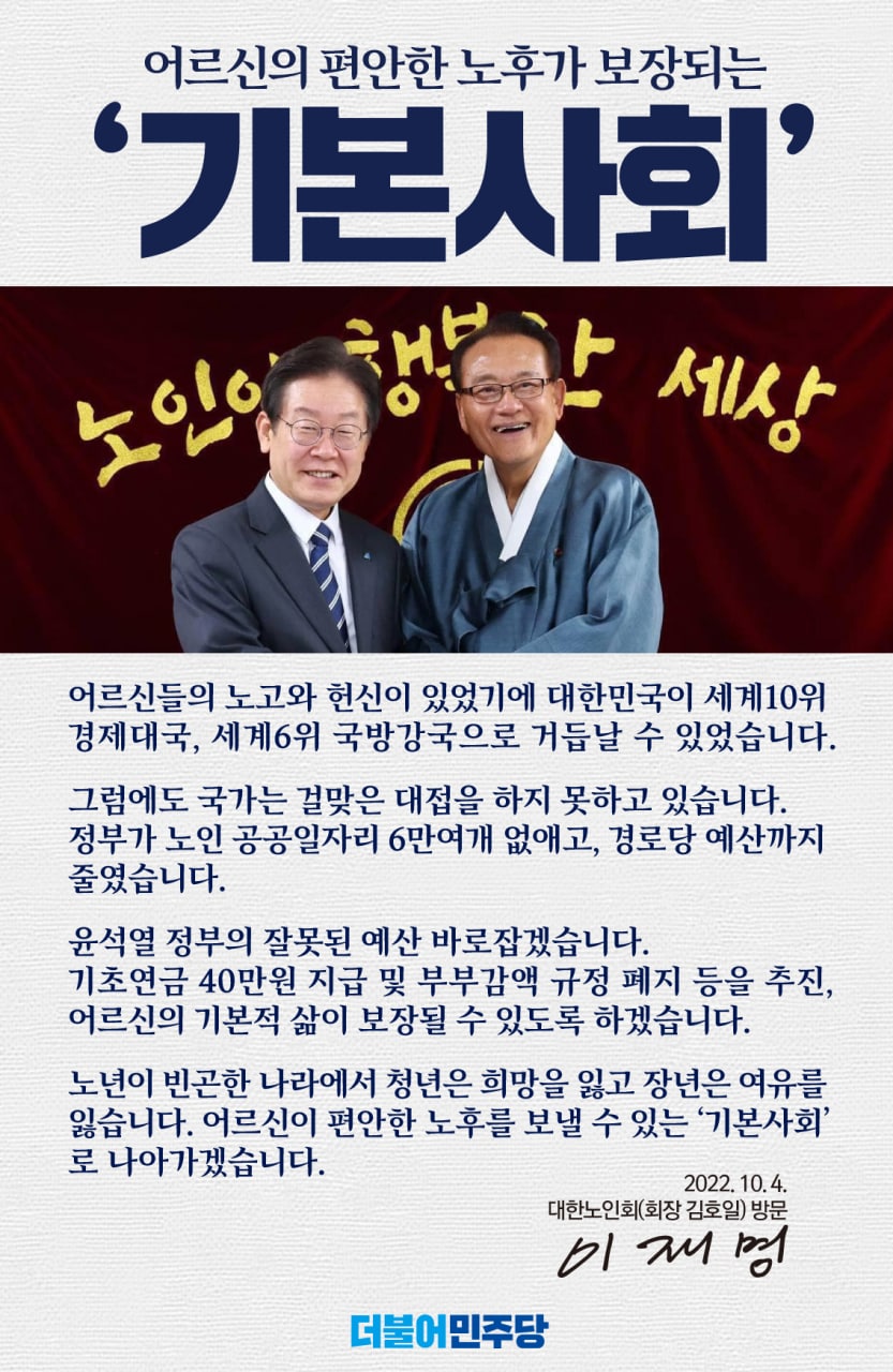 어르신의 편안한 노후가 보장되는 '기본사회'