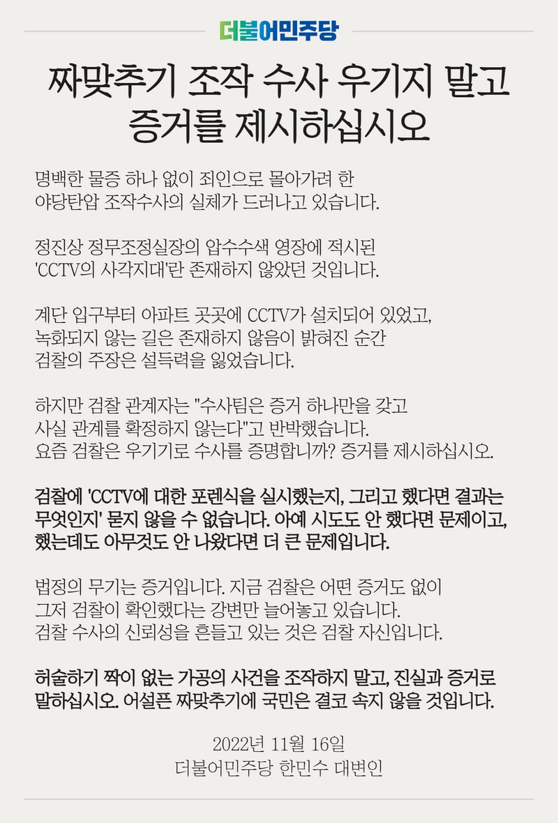 짜맞추기 조작 수사 우기지 말고 증거를 제시하십시오