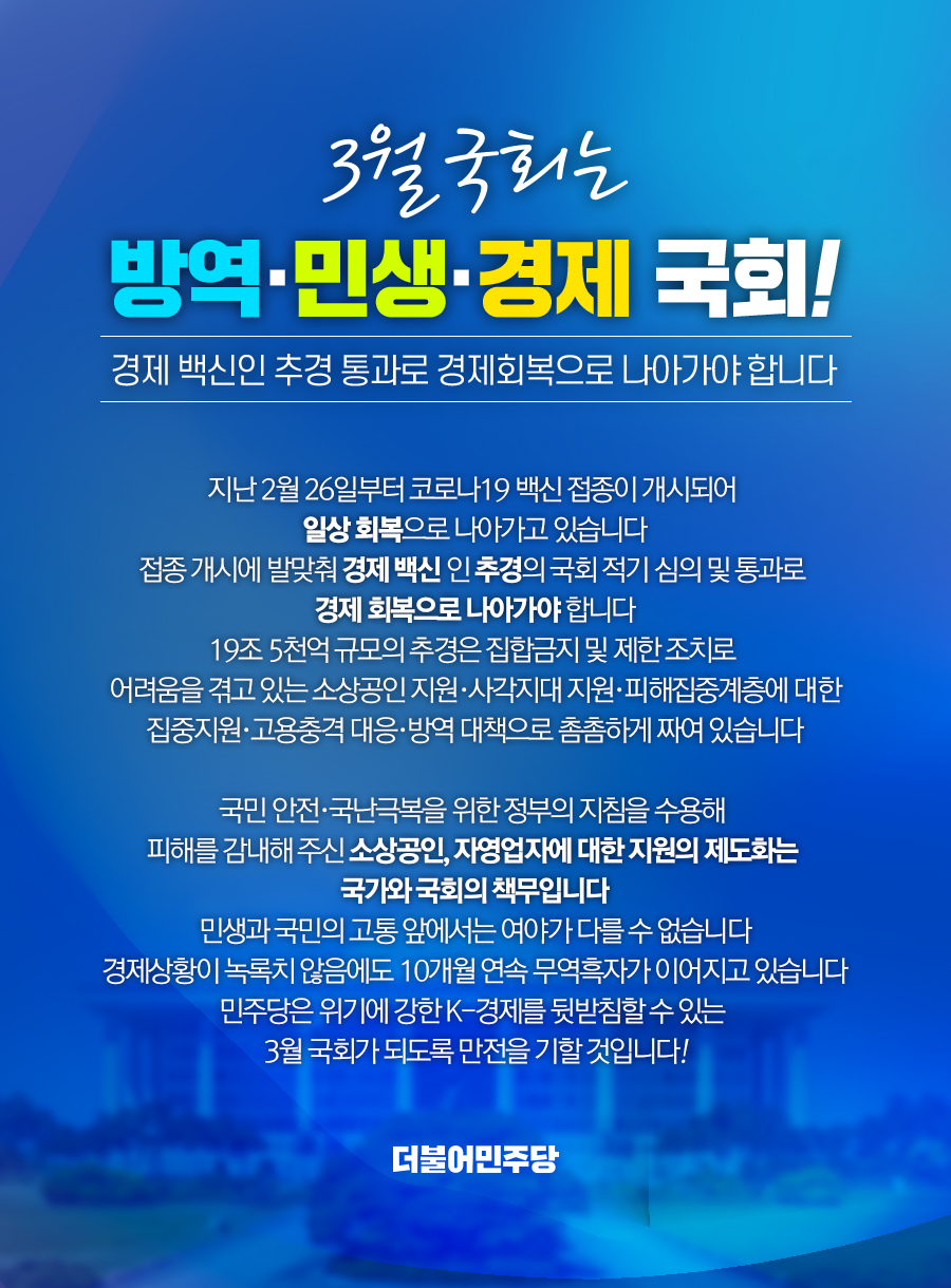 3월 국회는 방역·민생·경제 국회!