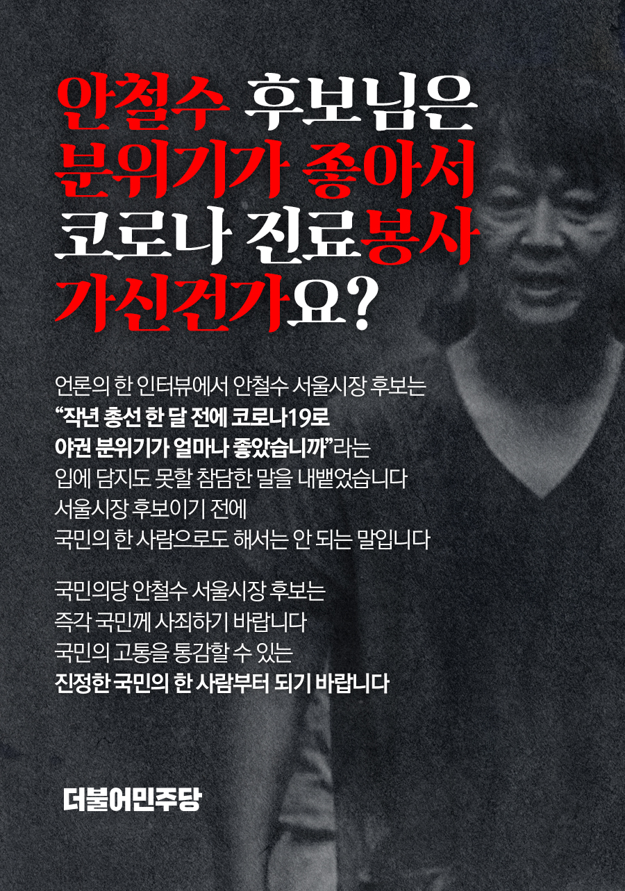 안철수 후보님은 분위기가 좋아서 코로나 진료봉사 가신건가요?