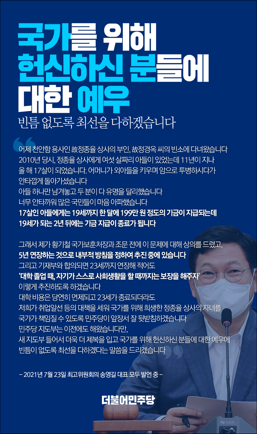 국가를 위해 헌신하신 분들에게 대한 예우 빈틈 없도록 최선을 다하겠습니다