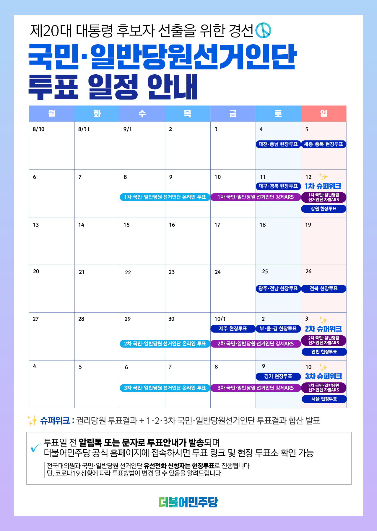 제20대 대통령 후보자 선출을 위한 경선 '선거인단 별 투표일 안내'