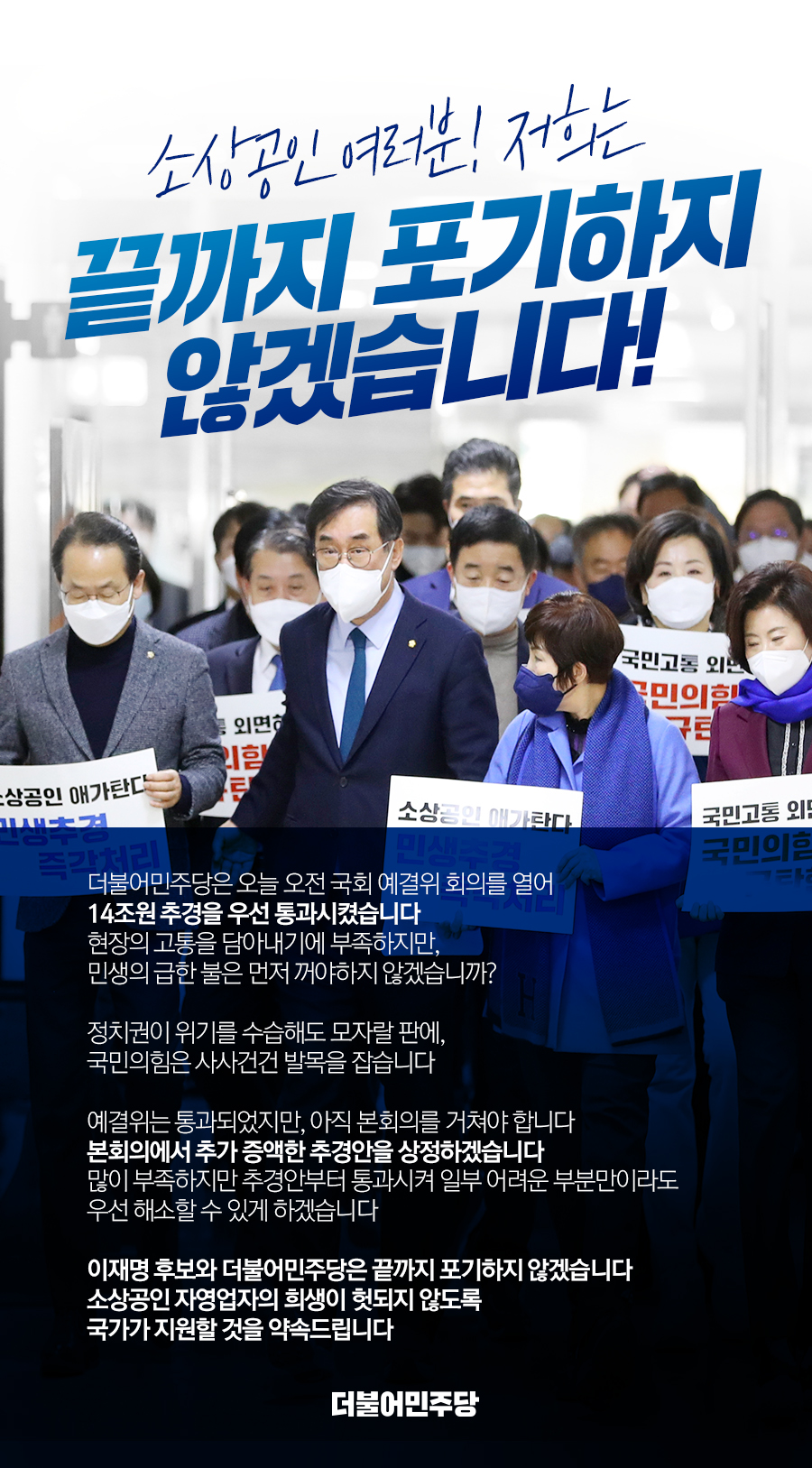 [14조원 추경 예결위 통과] 소상공인 여러분! 저희는 끝까지 포기하지 않겠습니다!