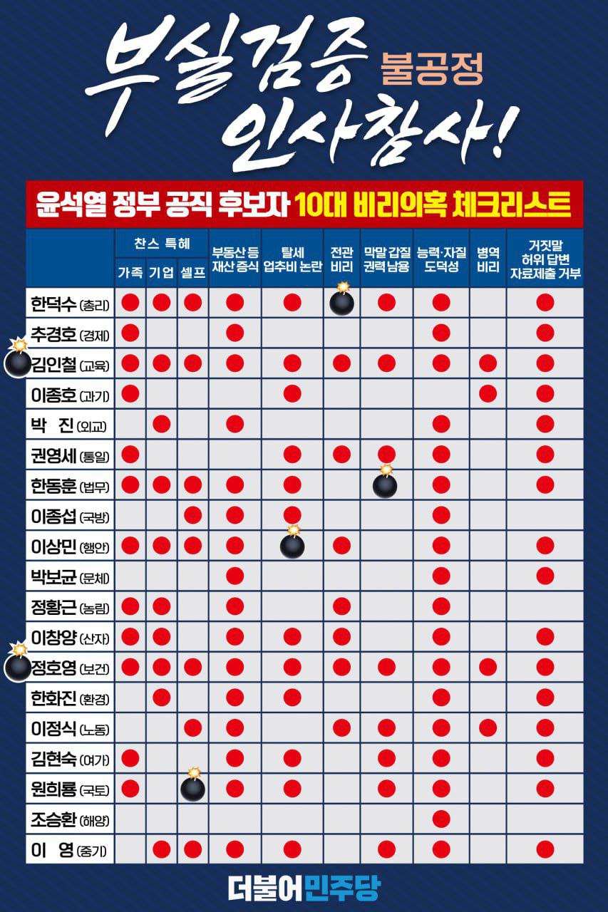 윤석열 정부 공직 후보자 10대 비리의혹 체크리스트