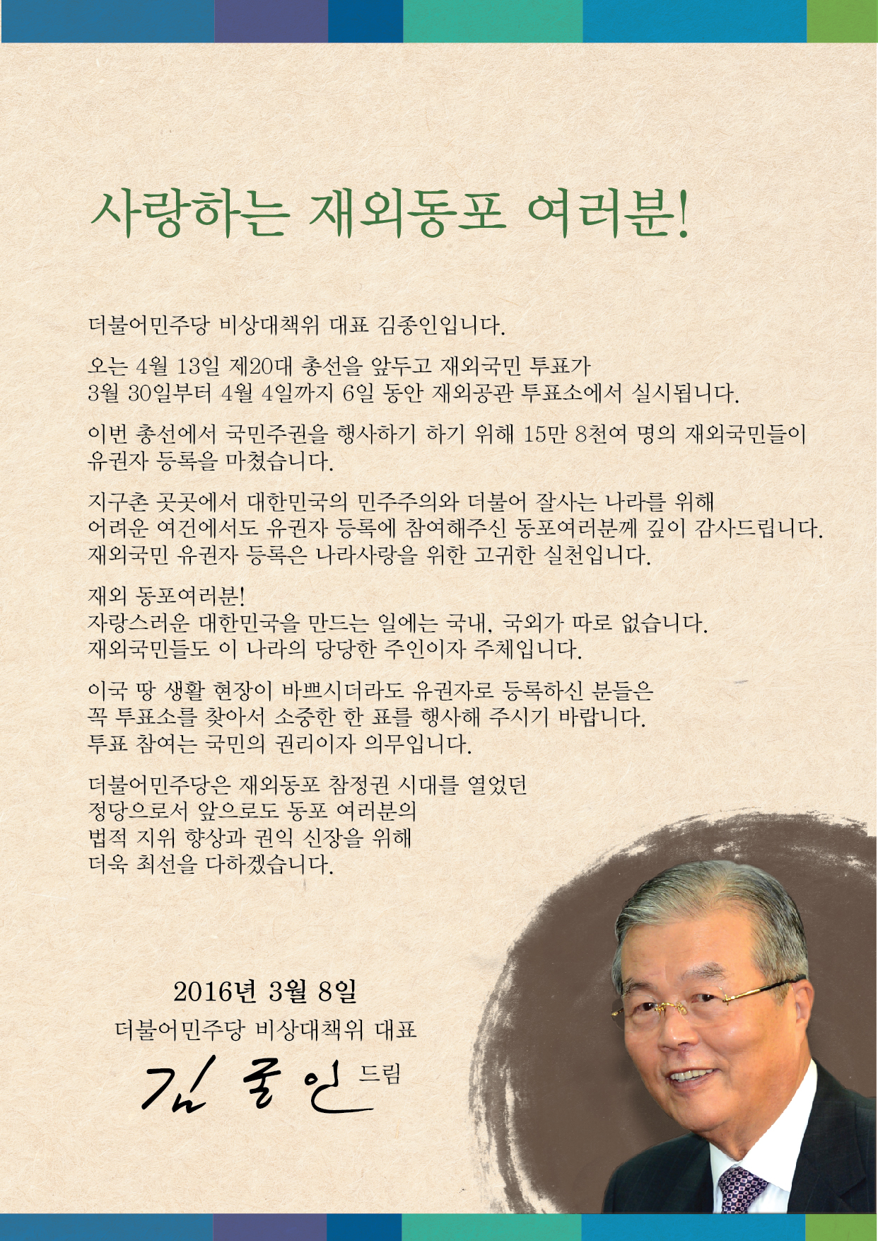 재외동포 여러분께 드리는 편지