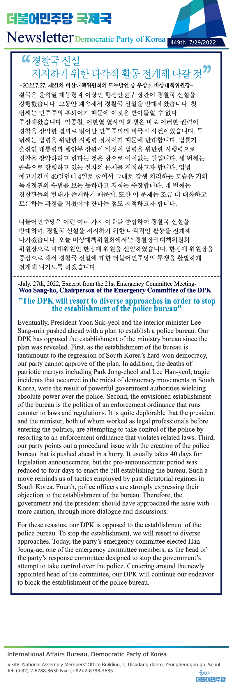 [449th Newsletter] Excerpt from the 21st Emergency Committee Meeting