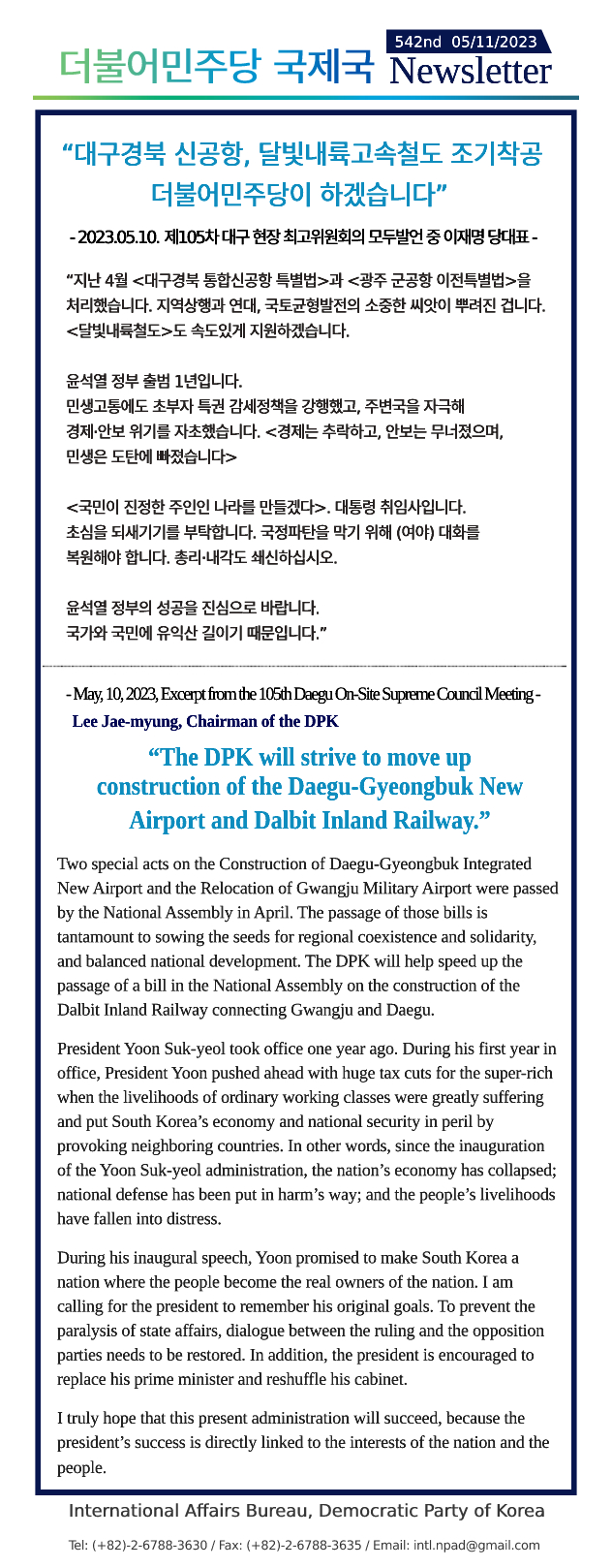 [542nd Newsletter]Excerpt from the 105th Daegu On-Site Supreme Council Meeting