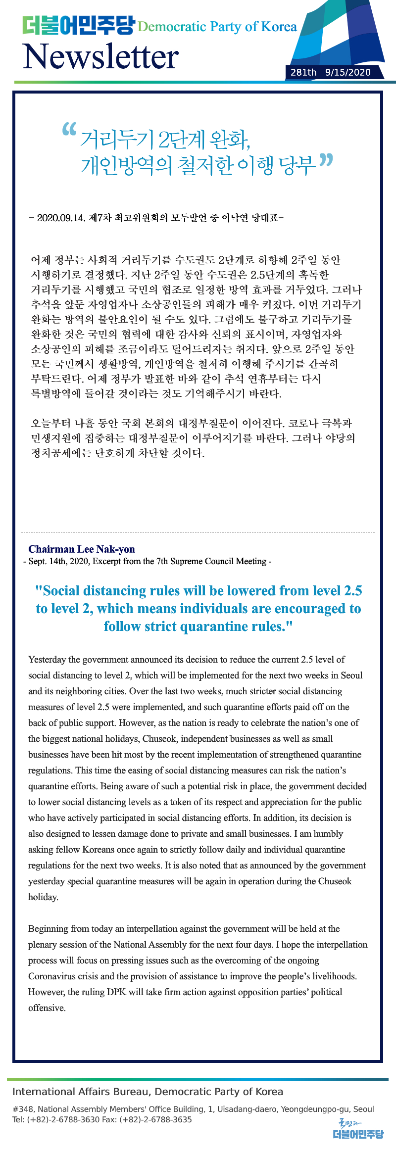 [280th Newsletter] Excerpt from the 5th Supreme Council Meeting