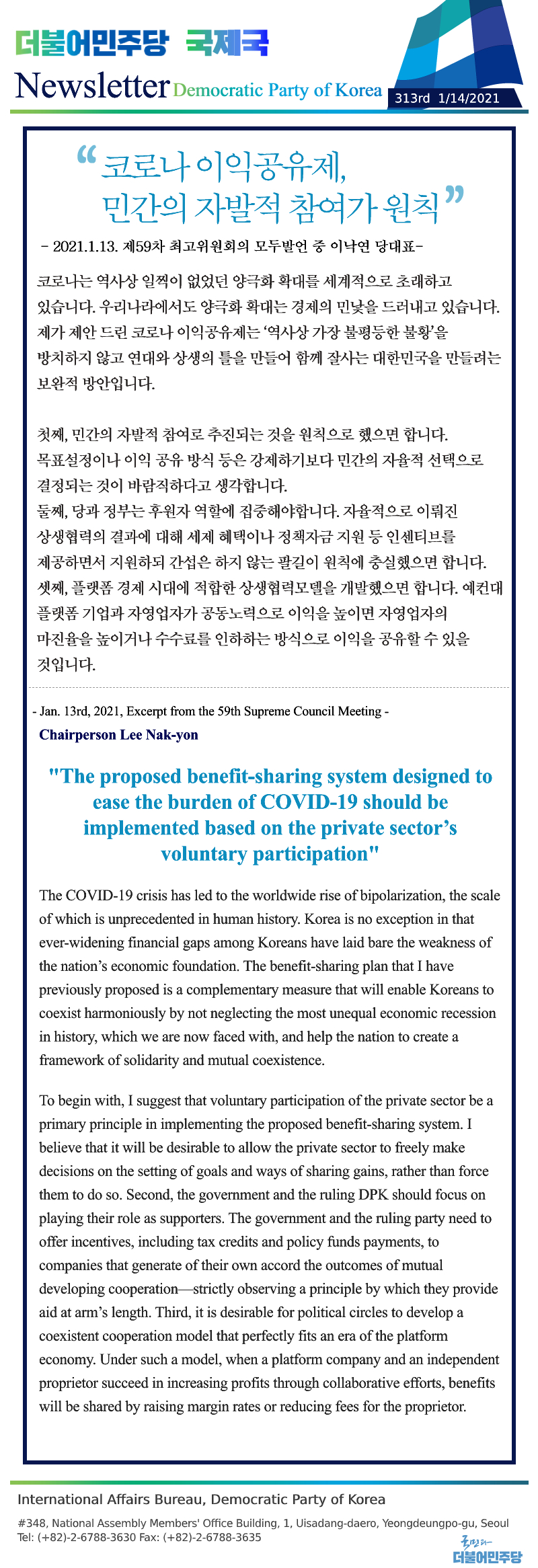[313rd Newsletter] Excerpt from the 59th Supreme Council Meeting