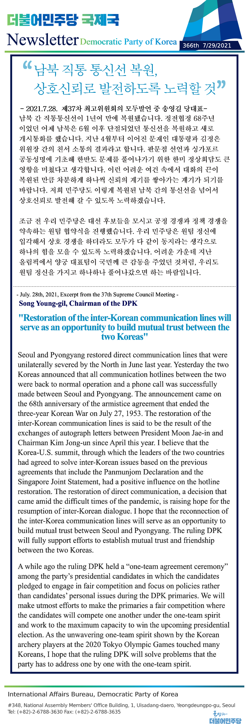 [366th Newsletter]Excerpt from the 37th Supreme Council Meeting