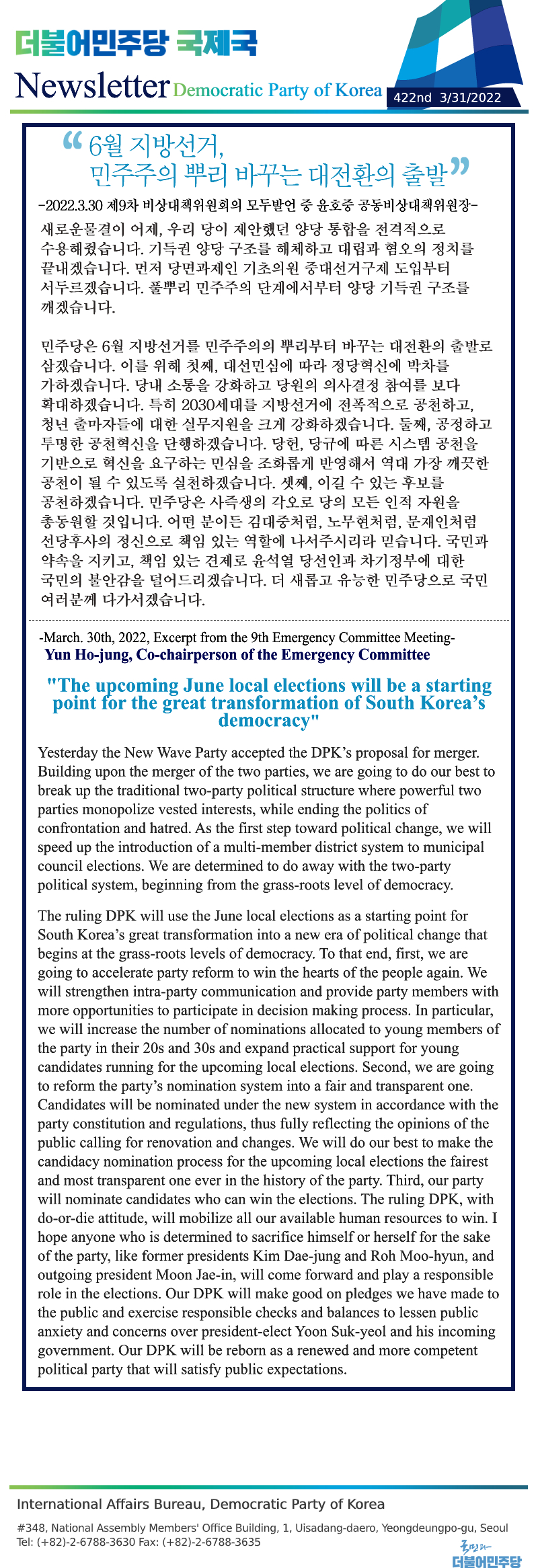 [421st Newsletter] Excerpt from the 5th Emergency Committee Meeting