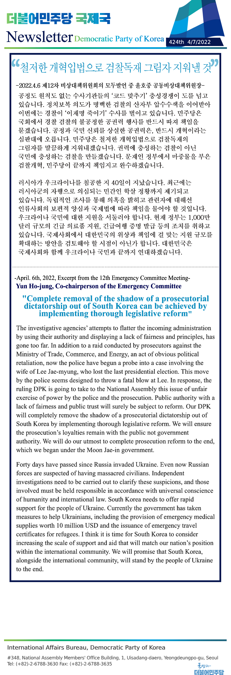 [424th Newsletter] Excerpt from the 12th Emergency Committee Meeting