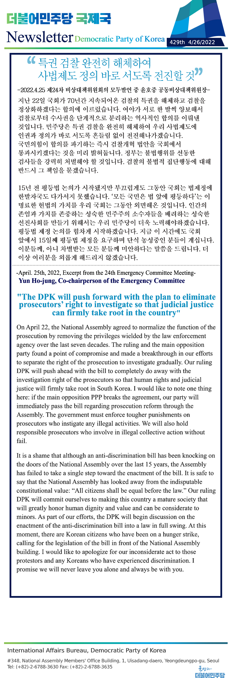 [429th Newsletter] Excerpt from the 24th Emergency Committee Meeting