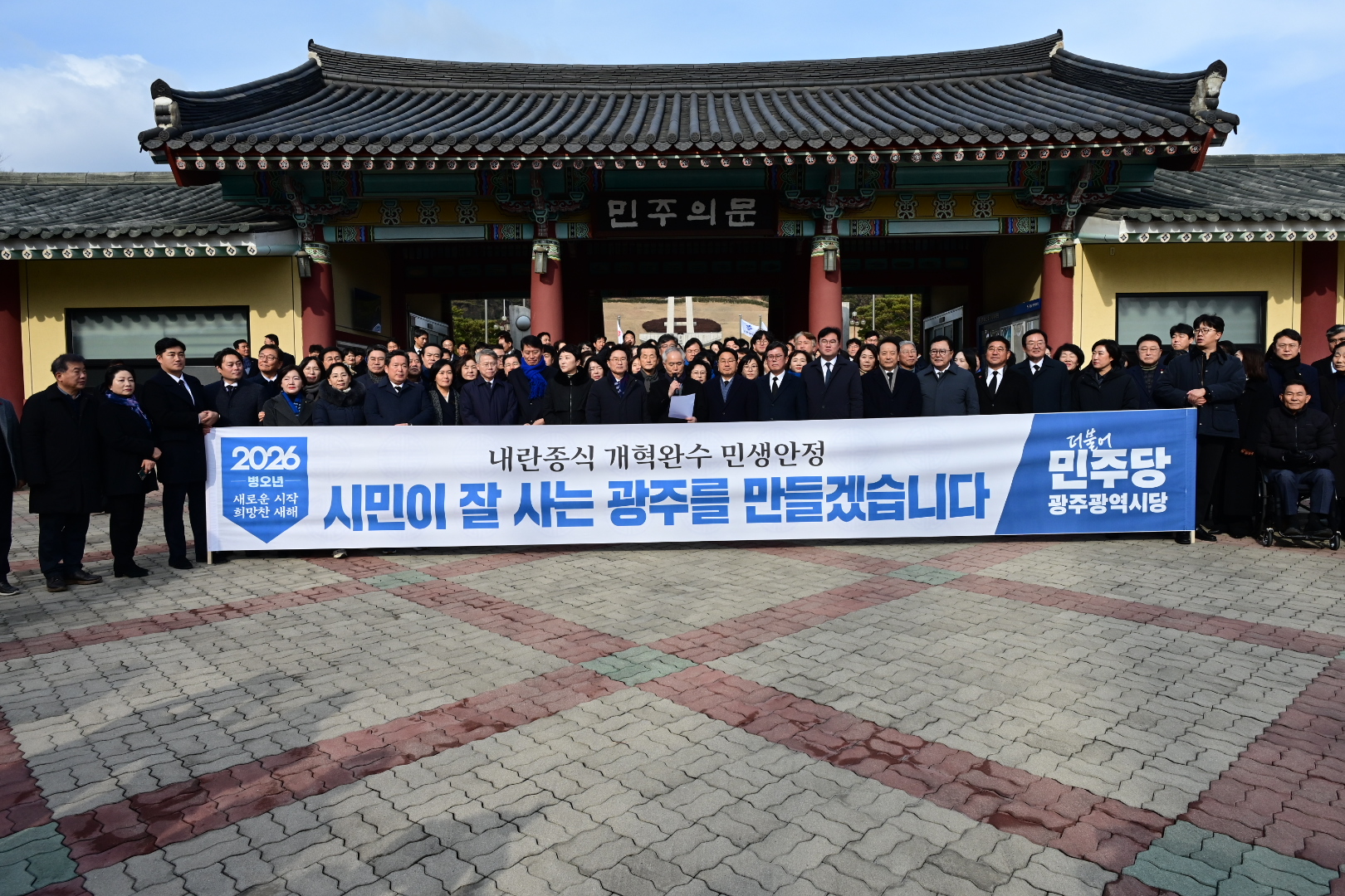 존경하는 광주시민 여러분, 2026년 새해를 맞아, 더불어민주당 광주광역시당은 민주주의의 상징인 국립 5·18 민주묘지를 참배했습니다. 이곳에서 새해를 시작하며, 민주주의의 소중함과 정치가 져야 할 책임을 다시 한번 마음에 새깁니다 광주는 민주주의의 역사와 함께 성장해 온 도시입니다. 5·18 민주화운동의 정신은 과거의 기억에 머무는 것이 아니라 오늘의 기준이며, 앞으로의 대한민국이 지켜야 할 가치입니다. 광주는 위기의 순간마다 올바른 선택으로 대한민국 사회가 나아가야 할 방향과 기준을 분명히 보여준 도시입니다. 이제 그 선택에 응답하는 것이 정치의 몫입니다. 민주주의를 훼손한 내란을 극복하고, 개혁을 완수하며, 민생을 안정시키라는 국민의 선택에 더불어민주당이 책임 있게 답하겠습니다. 선언에 그치지 않고, 국정 운영을 안정적으로 이끌며 시민의 일상이 흔들리지 않도록 하겠습니다. 광주광역시당은 중앙의 변화가 지역에서 체감될 수 있도록 그 역할을 충실히 수행하겠습니다. 정치의 책임은 말이 아니라 실천으로 확인되어야 합니다. 광주의 현안을 해결하는 일에서부터 그 책임을 실천하겠습니다. 지역 경제에 활력을 불어넣고 안정적인 일자리를 늘리며, 골목상권이 다시 살아나도록 하겠습니다. 시민의 안전과 삶의 질을 지키는 과제들을 차분히 풀어가고, AI를 비롯한 미래 산업 기반을 키워 변화가 시민의 일상에서 체감되도록 하겠습니다. 더 나아가 광주 군공항 이전을 풀어낸 경험처럼, 해묵은 지역 과제들 역시 민주당이 책임 있게 나서 소통과 협의를 통해 끝까지 해결해 나가겠습니다. 이러한 실천이 광주시민의 신뢰로 이어질 수 있도록 결과로 증명하겠습니다. 2025년 대선에서 광주는 역대 최고 투표율과 최고 득표율로 정권 창출의 선도적 역할을 해냈습니다. 이재명 대통령을 당선시켰던 그 의지와 각오로 2026년 지방선거에서도 광주에서부터 압도적인 승리를 만들어 전국으로 이어지는 승리의 출발점이 되고, 이재명 국민주권정부 성공의 든든한 초석을 다져가겠습니다. 다시 한번 이곳에 잠들어 계신 영령들 앞에 깊은 존경의 마음을 올리며, 새해 광주시민 여러분의 가정에 건강과 평안이 함께하시길 기원합니다. 더불어민주당 광주광역시당위원장양부남